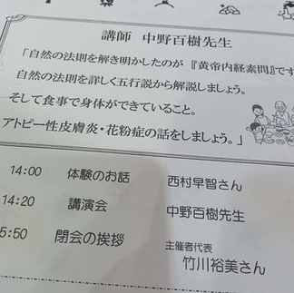 8月17日(日)友人に誘われて、「ごはんとからだを考える」講演会に参加しました。講師は、広州中医薬大学客員研究員であり、九州大学非常勤講師でもある中野百樹先生。東洋医学の視点から、食事と身体の関係について深いお話を伺いました。