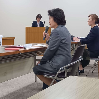 会場は石川県議会の大会議室。全国で初めての女性県議会議長となった安居知世議長が世話人代表として開いてくださり、司会は八田知子副議長です。講演会のあと議員らとの意見交換も行われました。私は、以下の2点をお願いしました。