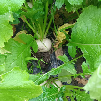 報告会の後、久しぶりに畑へ行くと かぶらが大きく育ち、街路樹も黄色に色づいていました。