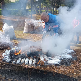 【野々市】落ち葉で焼き芋、秋田県民歌