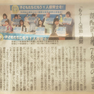 保育士の国の配置基準は、ゼロ歳児の基準が1998年に6人から3人になって以降は改訂されていません。 4~5歳児は75年前の制定時から一度も変わっておらず30人に1人。野々市は国の基準より多めに保育士を配置している部分もありますが、国に対しては、いのちを預かる保育士の数を増やしていきたいと切に希望します。