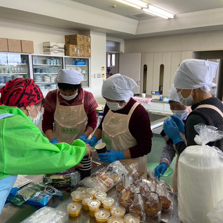 本日は、老人福祉センター椿荘のお隣の野々市市 保健センターで輪島市鵠巣(こうのす)地区から避難している避難者4名の方と一緒に70人分のポトフを作りました。