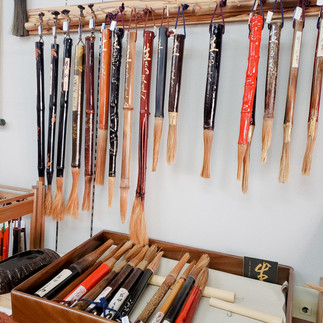 午後、竹の筆を制作・販売している野町のお店を訪れました。竹筆は持ち手から穂先までが竹。墨を含ませて紙に書きますと、味わい深い”かすれ”が作られます。私が書いた文字でその”かすれ”がわかるでしょうか? 竹筆以外に、竹のすずりなどの竹製品があり、竹の奥深さを感じました。